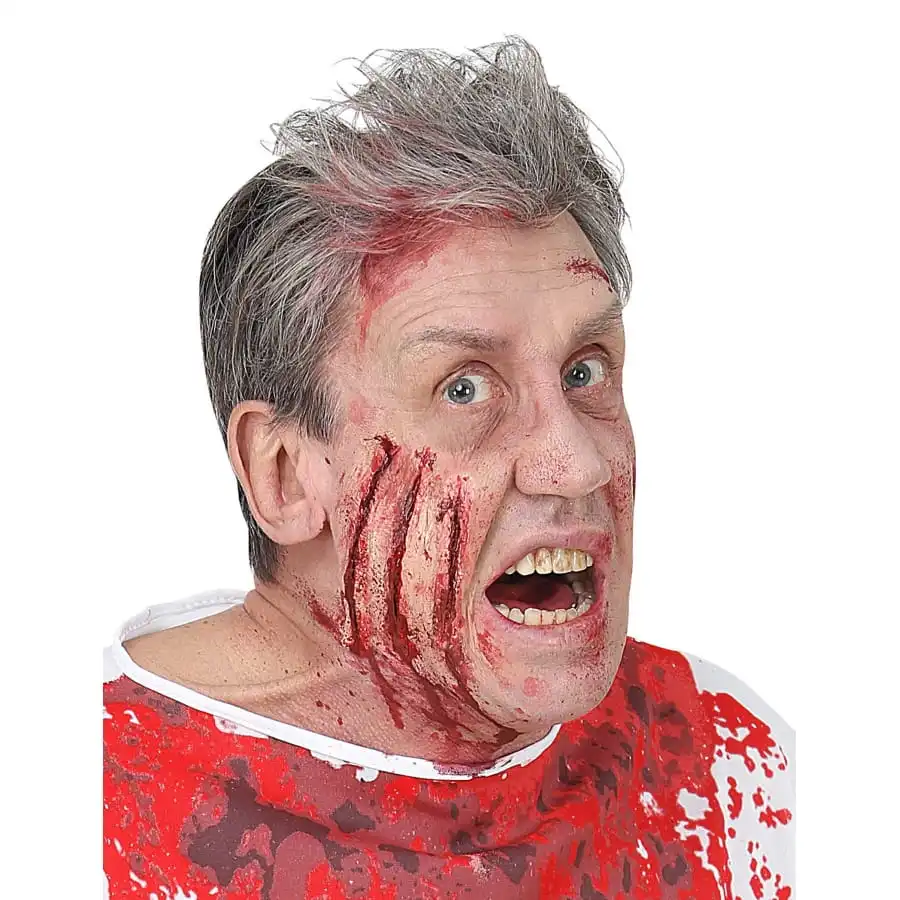 Pour la prochaine nuit d’Halloween, agrĂ©mentez votre dĂ©guisement des 3 plaies en latex avec adhĂ©sif.