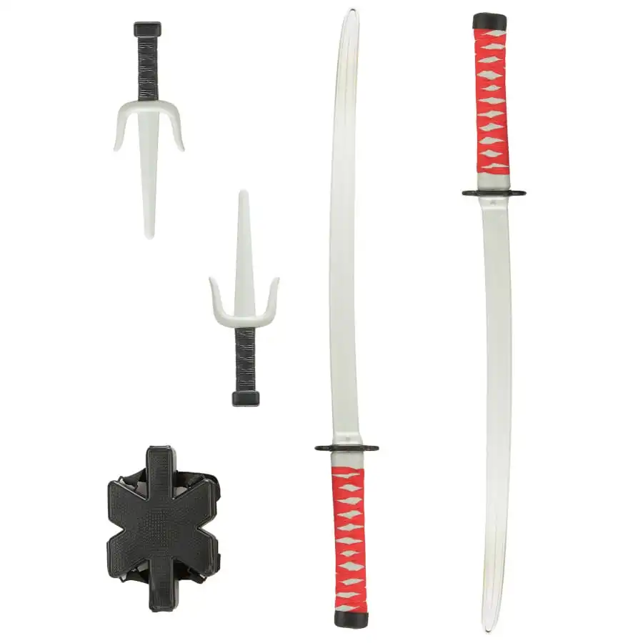 Si vous n’en possĂ©dez pas encore, voici les incontournables accessoires de Deadpool pour adulte comprenant 2 Ă©pĂ©es de ninja de 72 cm, 2 saĂŻs de 25 cm et un support pour armes.