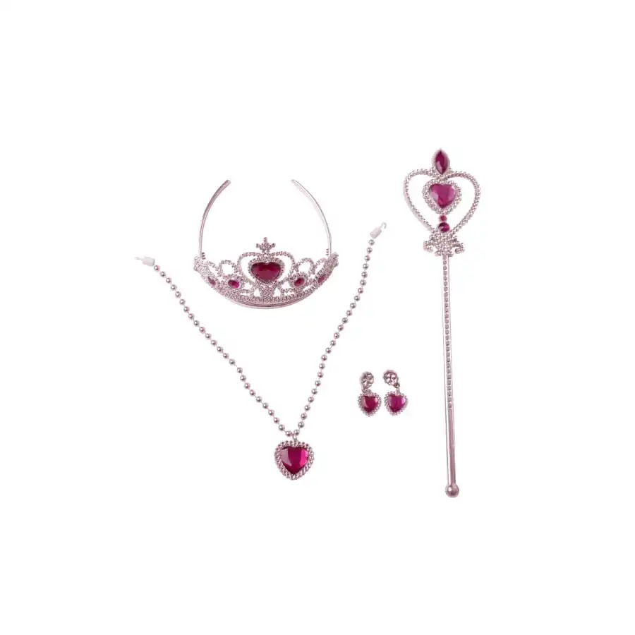 Le kit d’accessoires roses de princesse pour enfant est constituĂ© de 4 pièces.