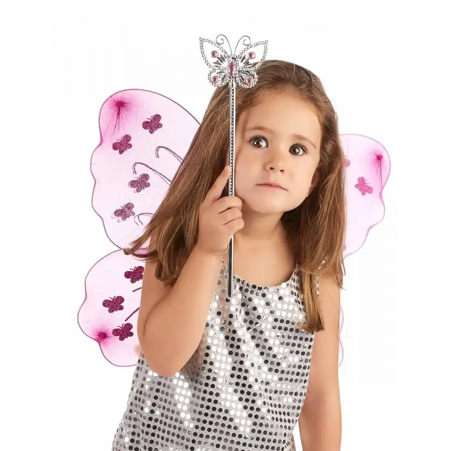 Si vous souhaitez apparaĂ®tre comme la princesse Sofia Ă l’occasion du prochain carnaval, accessoirisez votre dĂ©guisement avec cette magnifique baguette papillon rose de 33 cm.