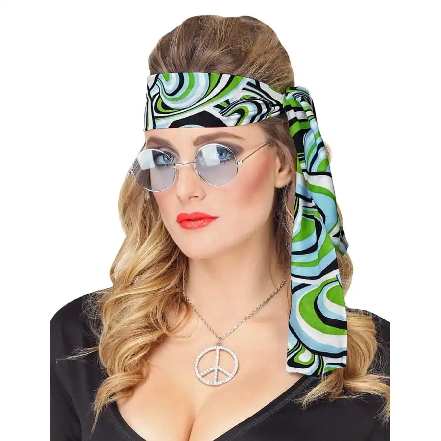 Avec ses motifs psychédéliques vert, noir, bleu et blanc, il se nouera aisément selon votre convenance pour vous donner un look cool et hippie.
