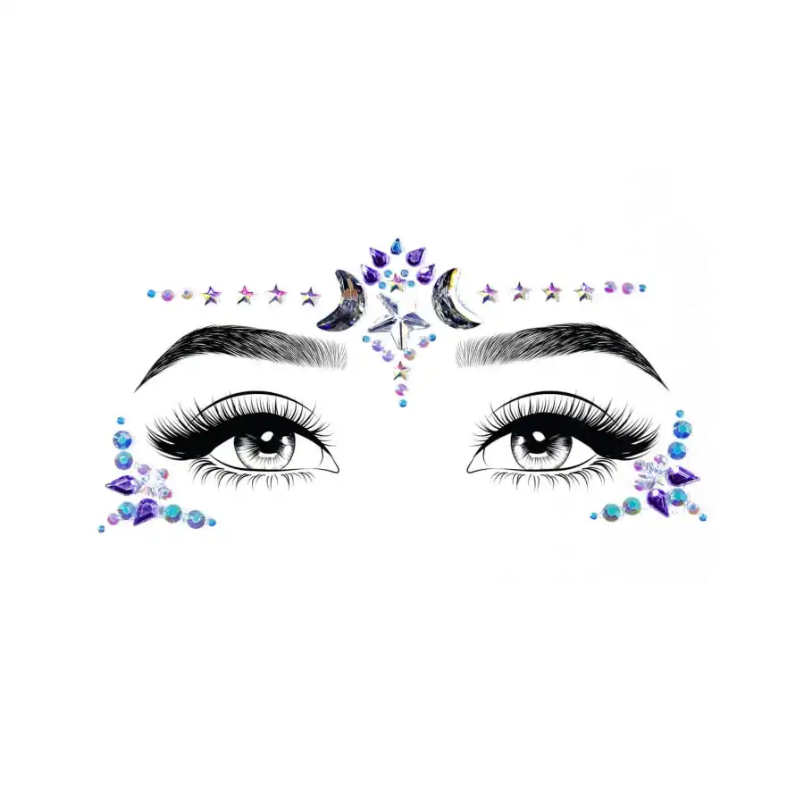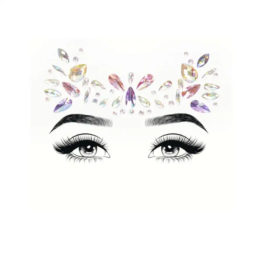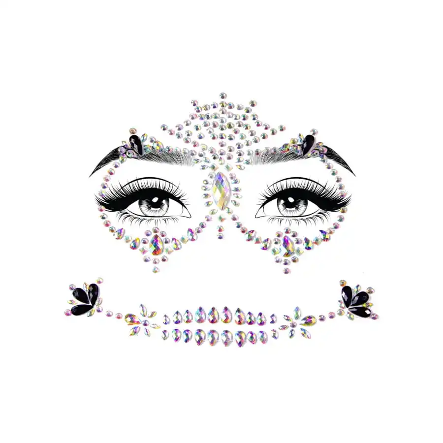Les strass sont de différentes couleurs et forment un motif très original, une fois collé sur votre visage.