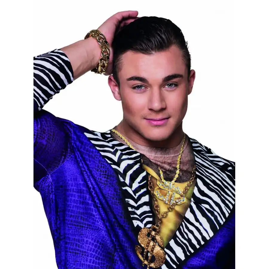 Le bracelet grosse chaĂźne dorĂ©e effet bling bling est faite d’une chaĂźne Ă gros maillons et donnera l’illusion que vous portez un bracelet en or.