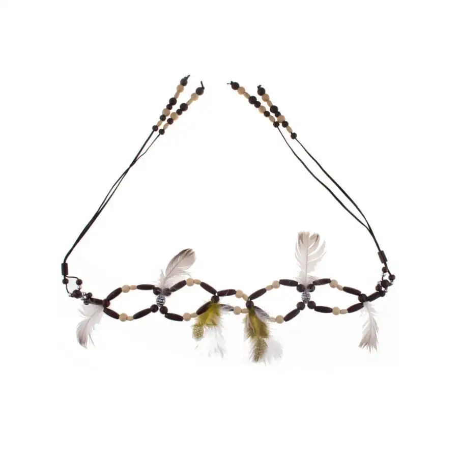 Vous n’aurez jamais Ă©tĂ© aussi stylĂ© et tendance qu’avec cette superbe ceinture marron indienne plumes et perles.