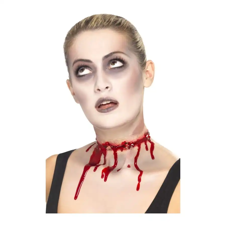 Cicatrice en latex représenant une tête coupée ensanglantée pour homme ou femme. En la plaçant autour de votre cou, vous deviendrez une victime de décapitation parfaite.