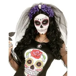Cette Coiffe Dia de los muertos avec voile et fleurs de marque Widmann SRL sera parfaite pour apporter une touche particulière à votre déguisement.