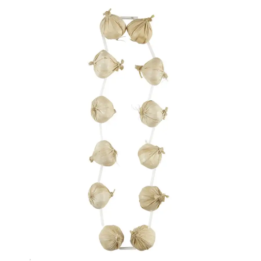 Ce collier au style atypique sort complètement de l’ordinaire et son rĂ´le est tout aussi singulier. ComposĂ© entièrement de 12 gousses d’ail factices, il est d’un rĂ©alisme impressionnant et fait 48 cm de long. Il vous offrira un riposte imparable contre tous vos ennemis vampires.
