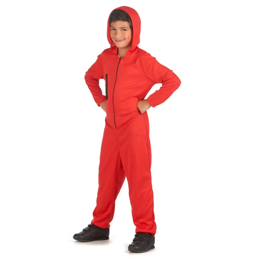 Lâchez la bride Ă votre enfant le temps d’une soirĂ©e Ă thème, en lui offrant la combinaison rouge de braqueur de banque, enfant.
