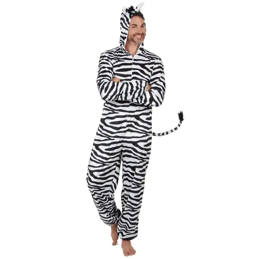 La capuche est Ă©quipĂ©e de deux oreilles et d’une petite crinière noire pour donner vie Ă votre zèbre. Et pour rendre le dĂ©guisement encore plus rĂ©aliste, une petite queue est cousue Ă l’arrière du costume. Enfin, la combinaison dispose d’une fermeture Ă©clair sur la partie avant pour faciliter l’enfilage et le retrait de la tenue.
