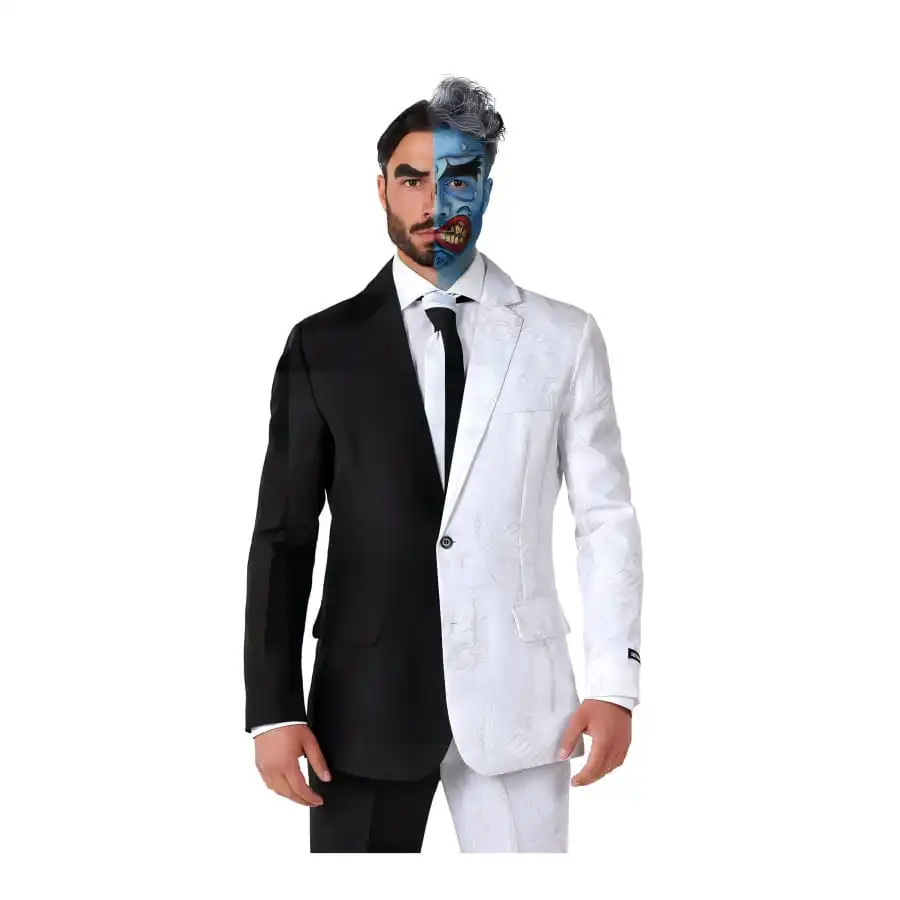 Si vous cherchez un dĂ©guisement unique et original pour votre prochaine soirĂ©e dĂ©guisĂ©e, le costume 3 pièces de Double Face est la solution idĂ©ale ! Arborant un style bicolore noir et blanc, ce costume vous fera incarner un personnage de bande dessinĂ©e tout droit sorti de l’imagination de l’univers du Joker.