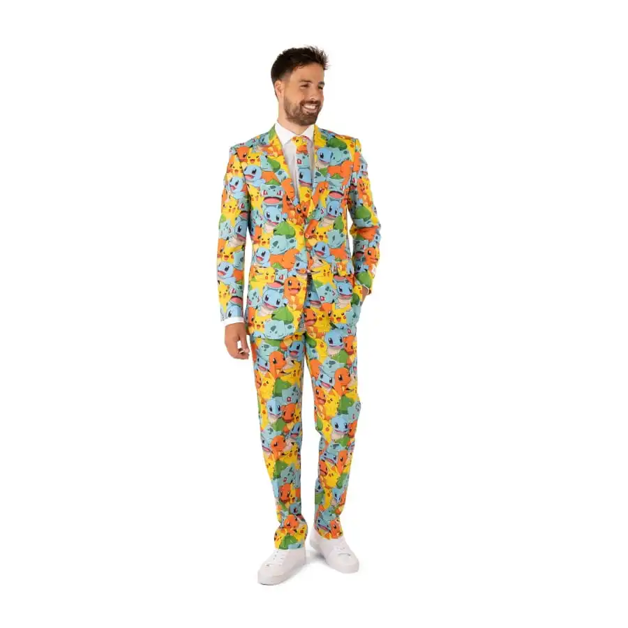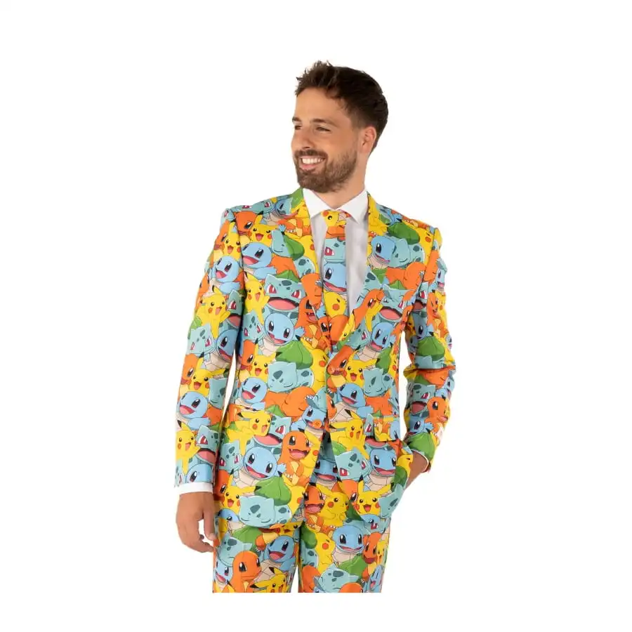 Partez à la recherche du style et de l’élégance tout en restant dans le thème de la soirée, avec le costume 3 pièces imprimé Pokémon.