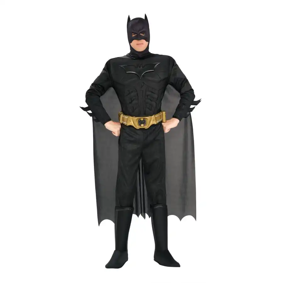 Set de dĂ©guisement de super hĂ©ros sous licence, pour homme, composĂ© d’une cape, d’une ceinture, de surbottes et d’une combinaison 3D. Cet ensemble de luxe noir et dorĂ© est disponible en taille S, M ou L. Il est parfait pour se dĂ©guiser en Batman The Dark Knight.