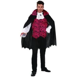 Parmi notre collection de déguisements d’Halloween, nous présentons ce costume cape de vampire imprimé têtes de mort qui est destiné aux hommes.