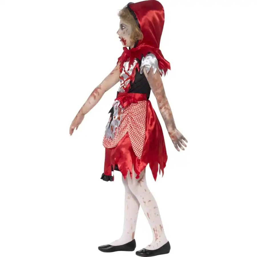 Ce costume Chaperon Rouge zombie si effrayant, sous licence Disney, que vous voyez lĂ , est destinĂ© aux petites filles, Ă mettre pour Halloween, le soir le plus terrifiant de l’annĂ©e. Il ressemble tout Ă fait Ă la tenue du Chaperon Rouge, sauf que c’est en version zombie. Ce dĂ©guisement est composĂ© d’une robe et d’une pèlerine, de couleur rouge, visuellement très usĂ©es, avec des fausses taches de sang un peu partout. N’hĂ©sitez pas Ă rajouter des taches de sang sur les mains, les pieds, et surtout sur le visage de votre petite fille, ainsi que du maquillage si nĂ©cessaire, tout ça pour faire plus rĂ©aliste.