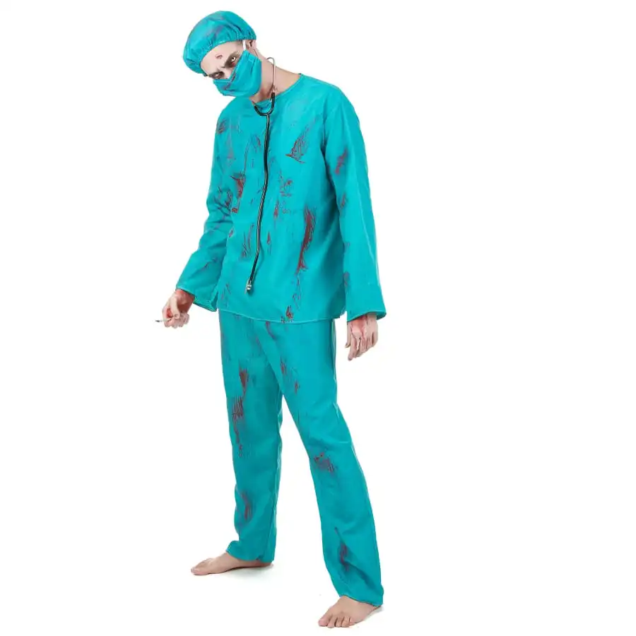 Les hĂ´pitaux inspirent le plus souvent les films d’horreur et notamment la chirurgie. Pourquoi ne pas opter pour un costume de chirurgien zombie pour adulte, Ă l’occasion de la fĂŞte des morts. Il s’agit de tout un ensemble d’uniforme de chirurgien de couleur bleu. Il comprend un T-shirt Ă coupe droite et Ă manches longues. Comptez aussi un large pantalon qui offre un maximum de confort. Une coiffe de chirurgien et un masque viennent complĂ©ter le tout pour un vrai look de mĂ©decin. Des taches de sang rouge se retrouvent sur l’ensemble de la tenue pour rappeler le cĂ´tĂ© zombie. Messieurs, avec un tel dĂ©guisement pour halloween, soyez certain de crĂ©er la terreur !