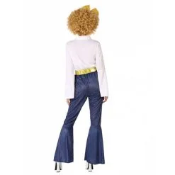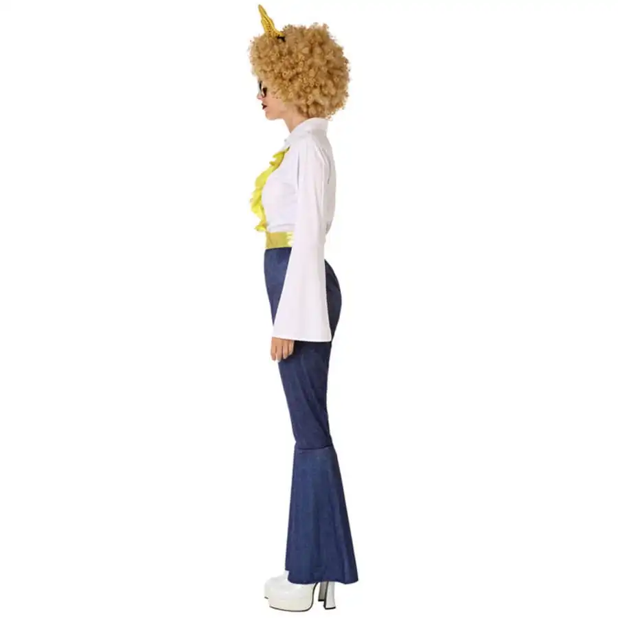 Le costume de danseuse disco jeans et doré pour adulte est destiné aux femmes.