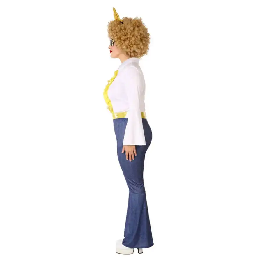 Le costume de femme disco blanc doré grande taille est un ensemble de 3 pièces.