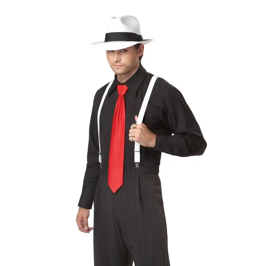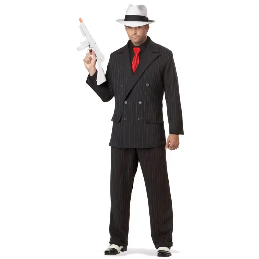 Ce Costume de gangster noir fines lignes blanches sera idĂ©al pour vous transformer en un vĂ©ritable parrain de la mafia le temps d’un soir.