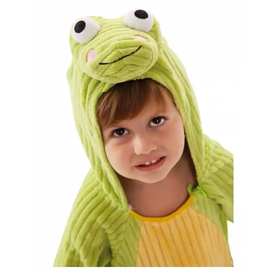 Ce dĂ©guisement complet transformera votre enfant en une mignonne petite grenouille lors d’un anniversaire sur le thème animaux.