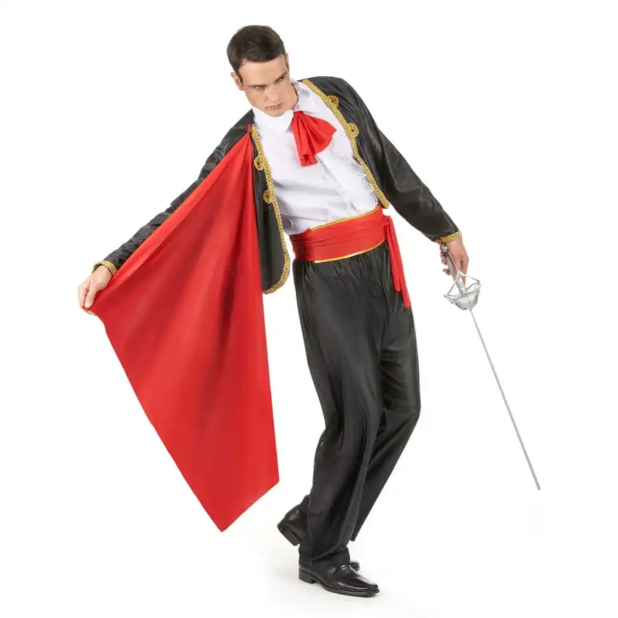 Pour incarner un espada lors d’une fĂŞte dĂ©guisĂ©e, voici un costume de matador noir et rouge.