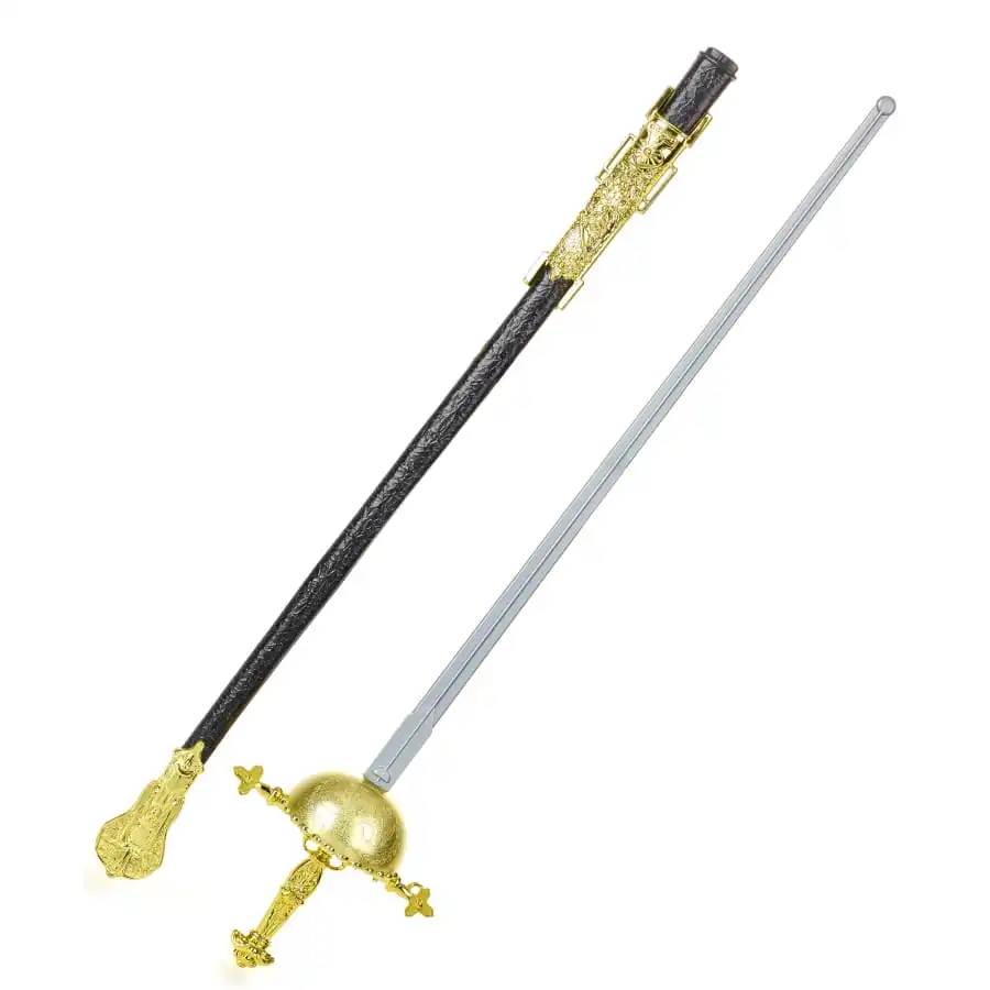 Elle est ornĂ©e de liserĂ©s dorĂ©s sur les cĂ´tĂ©s et s’attache dans le dos.