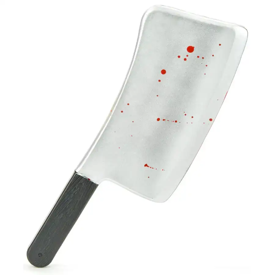 un pantalon noir cĂ´tĂ© droit dotĂ© d’os blancs recouverts de taches rouges simulant du sang.