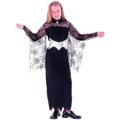 Ce costume de petite reine araignĂ©e sera parfait pour votre fillette comme dĂ©guisement pour une fĂŞte d’Halloween sous le thème de la sorcellerie.