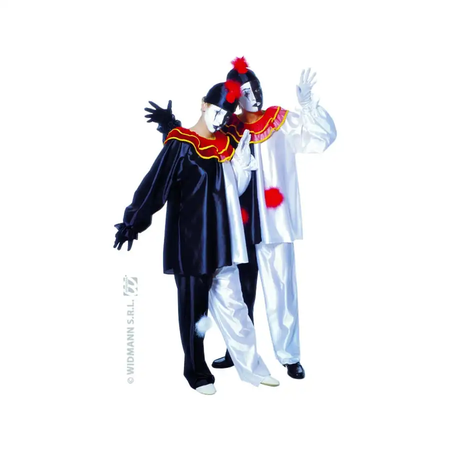 Pour le carnaval dĂ©guisez-vous en Pierrot. Ou si vous avez une soirĂ©e basĂ©e sur le thème du cirque pourquoi ne pas revĂŞtir ce dĂ©guisement. Il est composĂ© d’une tunique blanc et noir avec des pompons dessus le col est rouge et jaune, le costume comporte aussi un pantalon blanc et noir avec un pompon dessus.