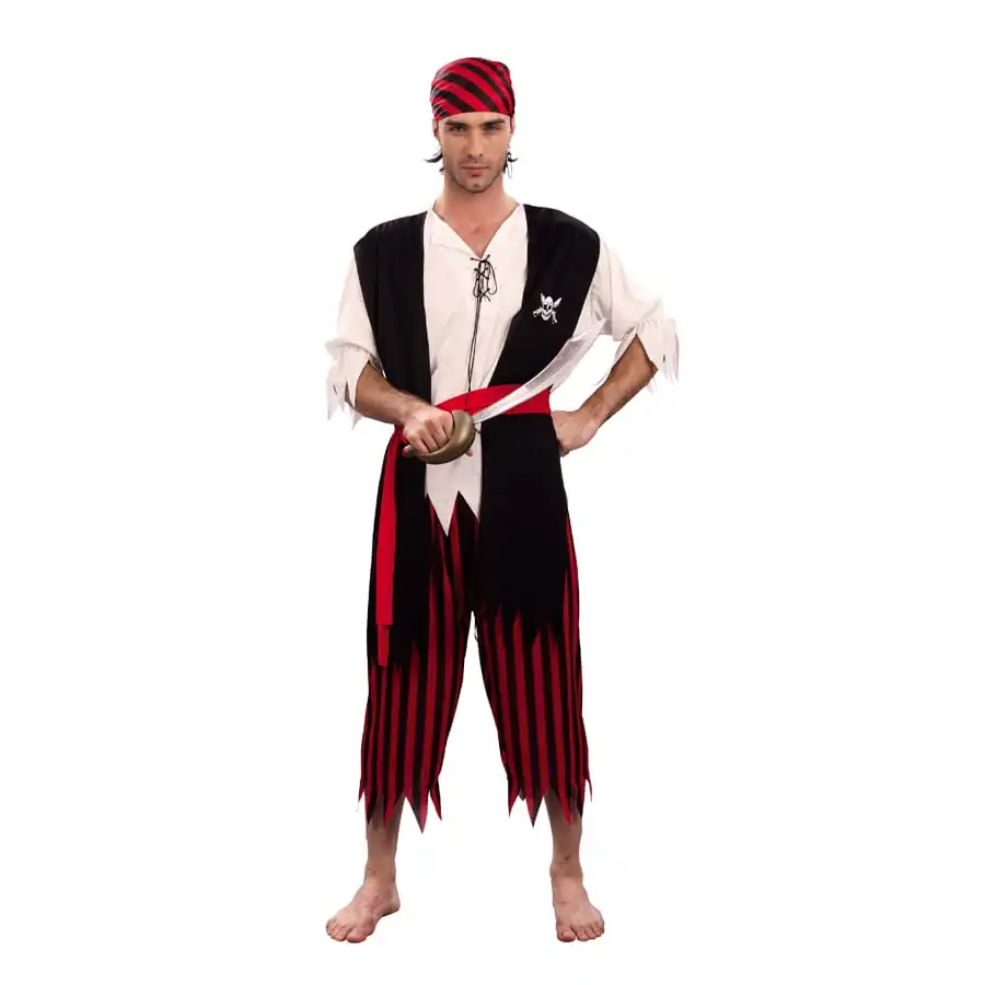 Costume De Pirate Noir Et Rouge Rayé, Adulte