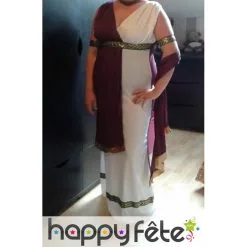 Dans cette tenue que nous vous proposons ici, vous serez la femme de l’empereur de Rome, aussi chic que sexy ! L’ensemble est composĂ© d’une robe longue blanche sans manches et dĂ©colletĂ©e, d’une cape drapĂ©e bordeaux ornĂ©e d’une couture dorĂ©e, de deux brassards et de deux mĂ©daillons attachĂ©s sur les Ă©paules. Ce costume conviendra aux femmes de tailles : L/ M/ S/ XL. Ainsi, parez-vous de vos plus beaux bijoux et soyez l’impĂ©ratrice romaine la plus convoitĂ©e lors de la prochaine soirĂ©e costumĂ©e ou Ă l’occasion des fĂŞtes sur les thèmes Romantique, Historique ou Autour du monde.