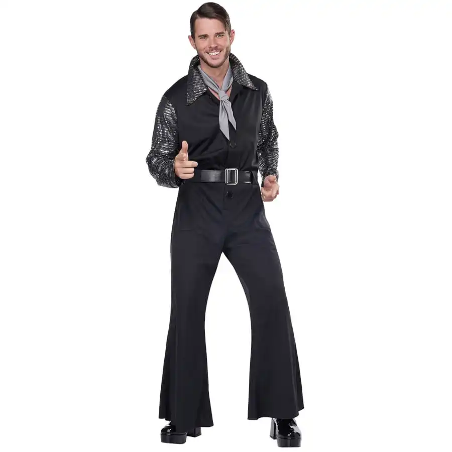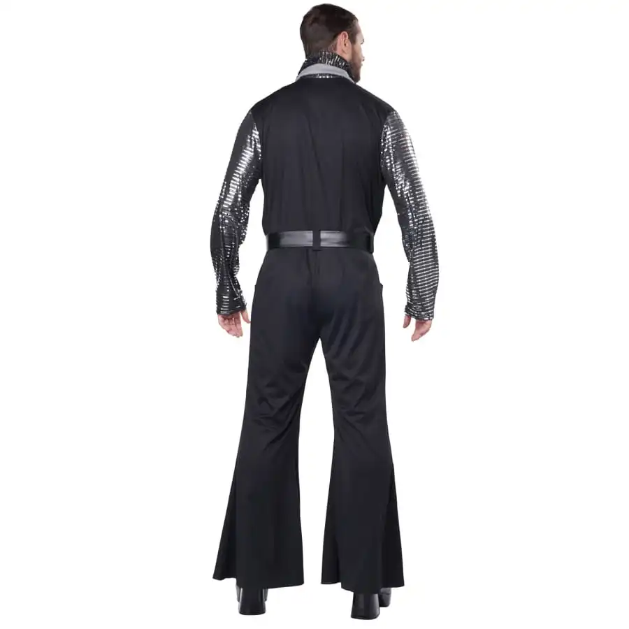 Illuminez une soirée dédiée aux seventies, avec le costume disco noir argenté pour homme.