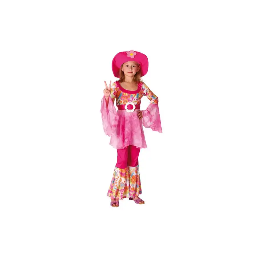 En mode cool avec ce set hippie : un chapeau, un pantalon et une chemise avec ceinture multicolores. Cet ensemble est parfait pour transformer votre enfant en Happy Diva pour un anniversaire ou un carnaval.