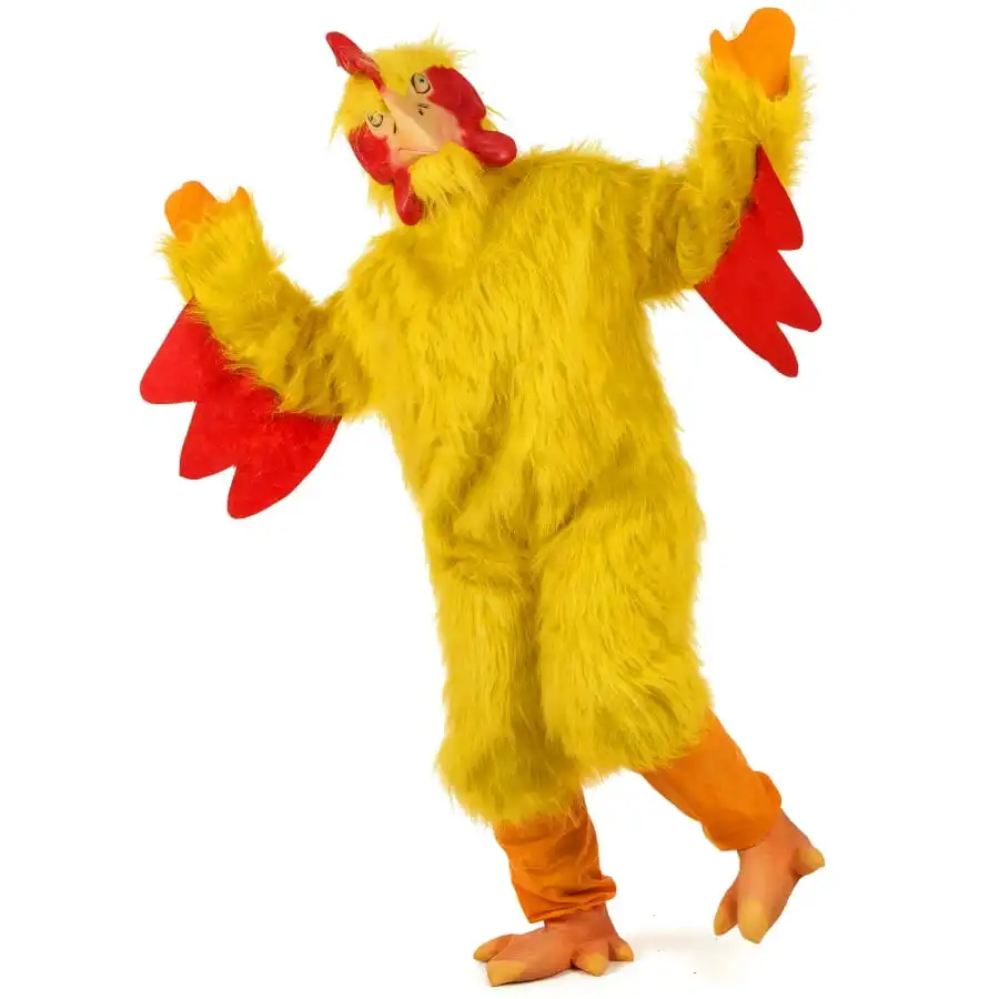 IdĂ©alement, une mascotte attire les regards. Vous ne passerez pas inaperçu dans ce costume intĂ©gral de poulet jaune pour adulte. Que ce soit pour un match, pour un enterrement de vie de cĂ©libataire ou pour une soirĂ©e dĂ©guisĂ©e, vous ĂŞtes certain de remporter un succès fou avec ce dĂ©guisement. Il s’agit d’une combinaison Ă manches longues recouverte de fausse fourrure jaune, ayant un aspect de duvet. Elle se referme dans le dos Ă l’aide de scratches. Un masque en forme de tĂŞte de poulet complète la combinaison. Il est en latex et est recouvert de fausse fourrure. Il suffit de l’enfiler comme une cagoule. Au niveau des dĂ©tails, des jambières orange Ă enfiler comme des chaussettes, des pattes orange en latex, avec trois doigts pour chaque patte, destinĂ©s aux pieds, ainsi qu’une paire de gants orange en feutrine vous seront fournis. Ce costume intĂ©gral pour homme et femme rendra vos soirĂ©es mĂ©morables !