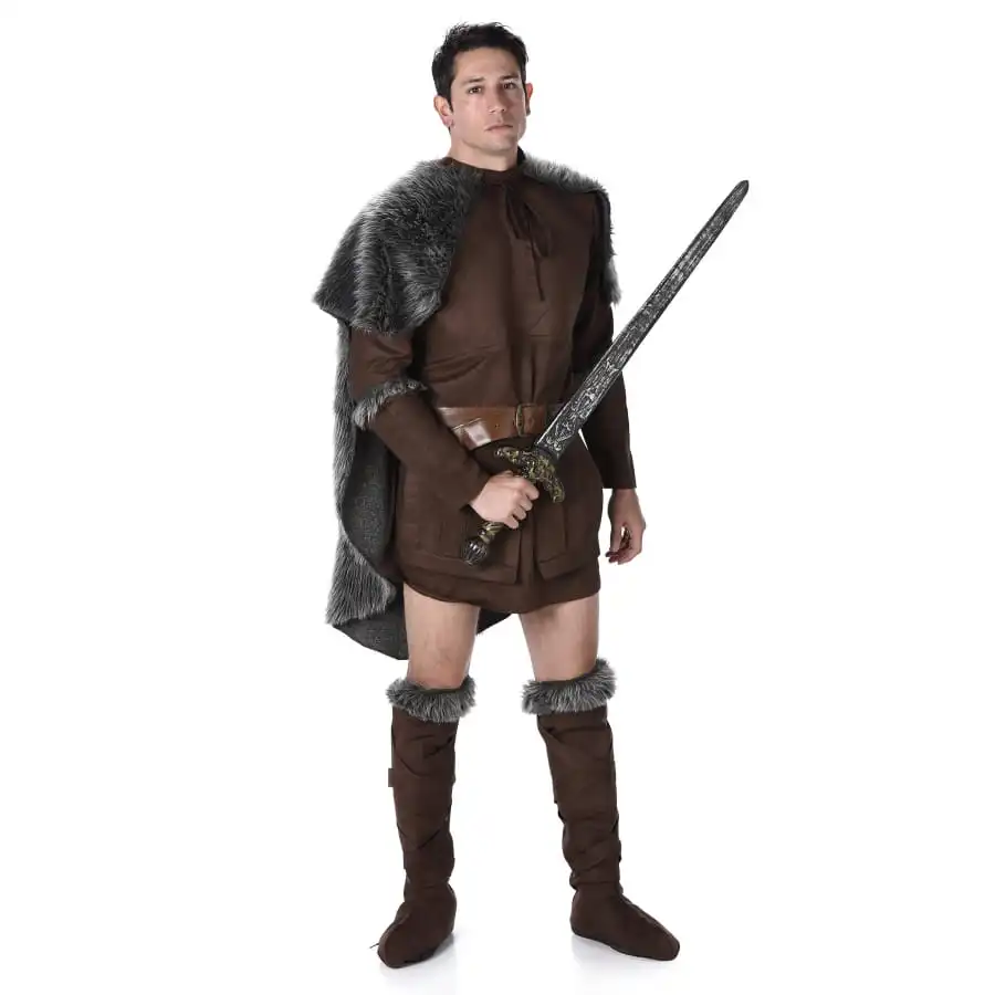 Incarnez un valeureux guerrier avec ce Costume marron de viking avec cape grise fait dans un tissu effet suédine.