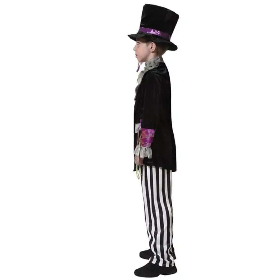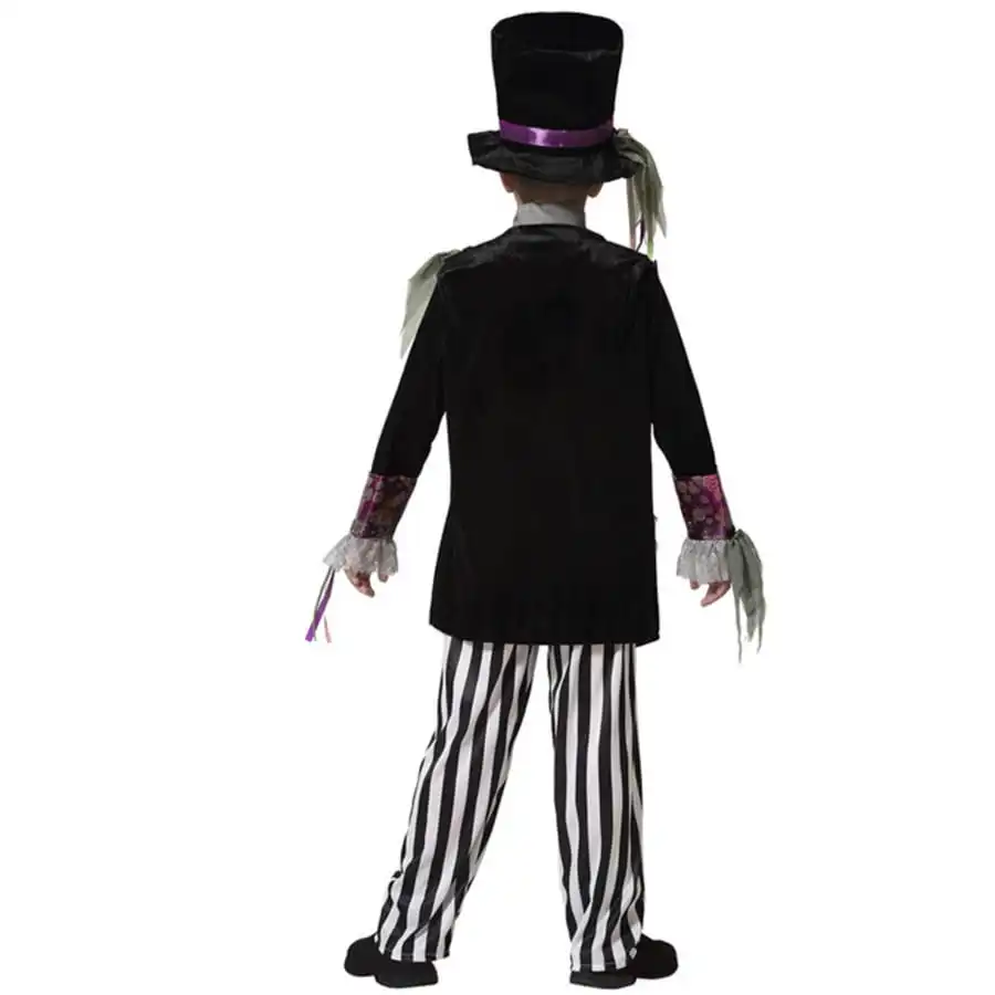 Le costume noir blanc de chapelier fou pour enfant est le dĂ©guisement parfait pour incarner un personnage sorti des tĂ©nèbres Ă l’occasion d’Halloween.