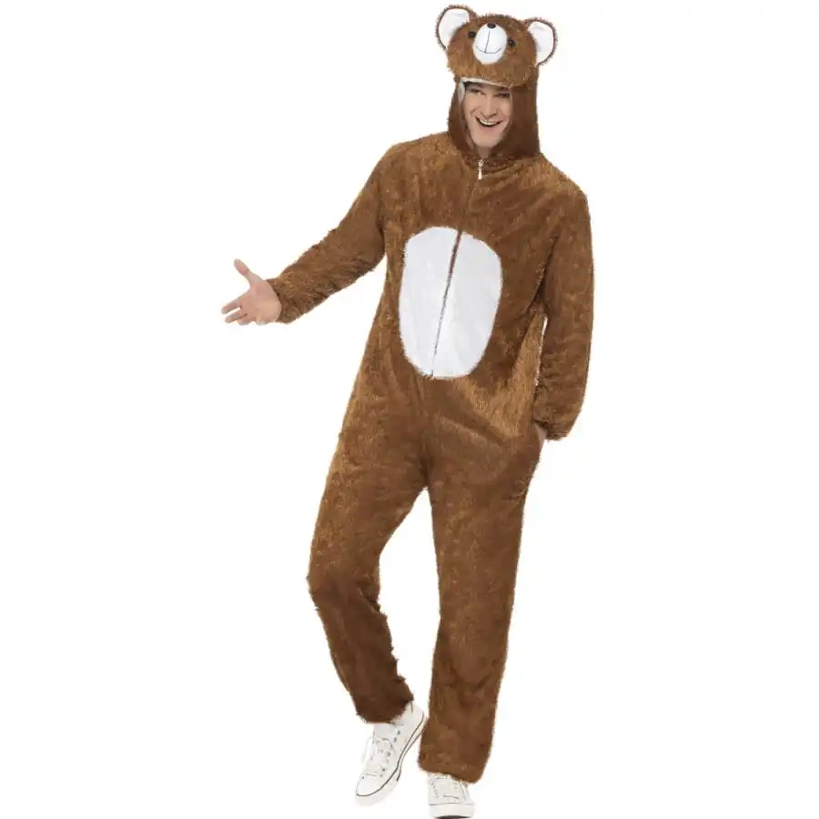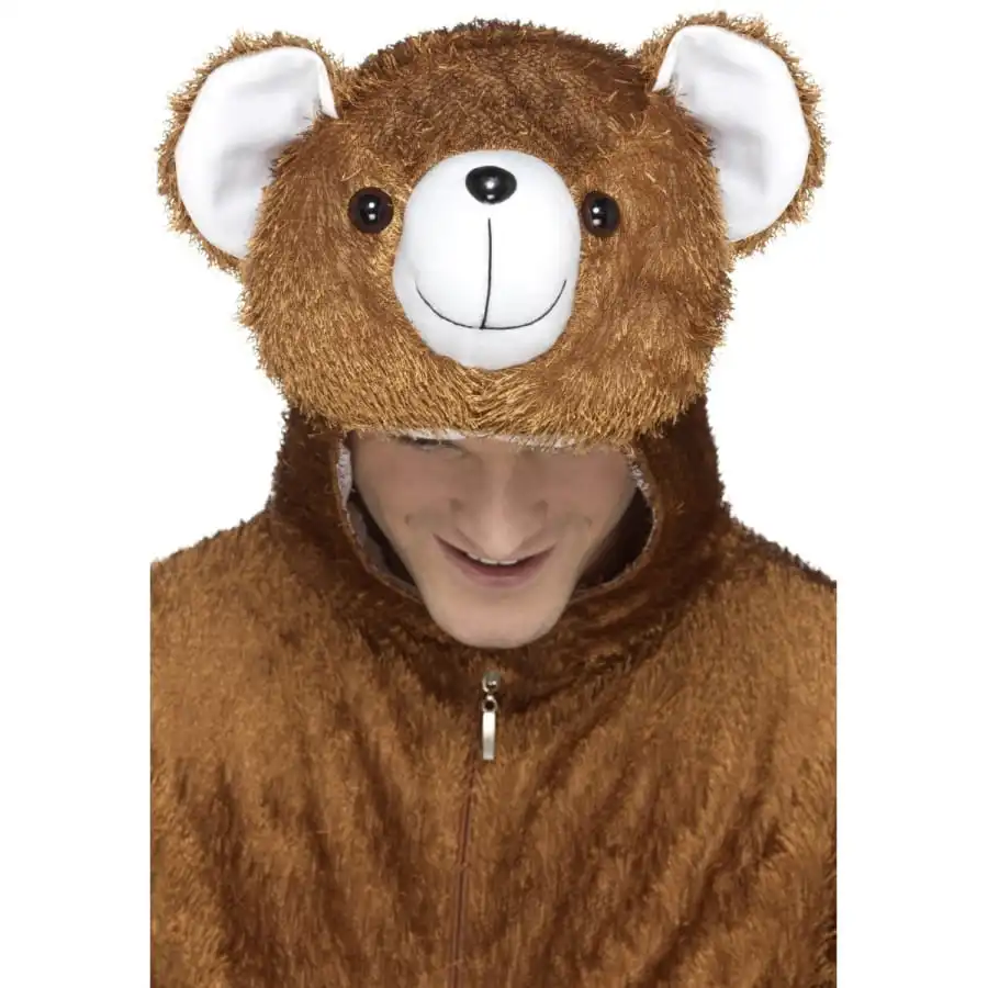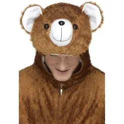 DĂ©guisement d’animal, pour homme ou mascotte, composĂ© d’une combinaison en peluche marron avec cagoule assortie intĂ©grĂ©e. Cet ensemble est disponible en taille M. Il est idĂ©al pour se transformer en gros ours tout mignon pour un carnaval ou un anniversaire.