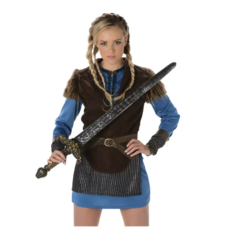 Du sexy et du charme au programme de votre prochaine soirée déguisée, avec le costume robe courte bleue de femme viking guerrier.