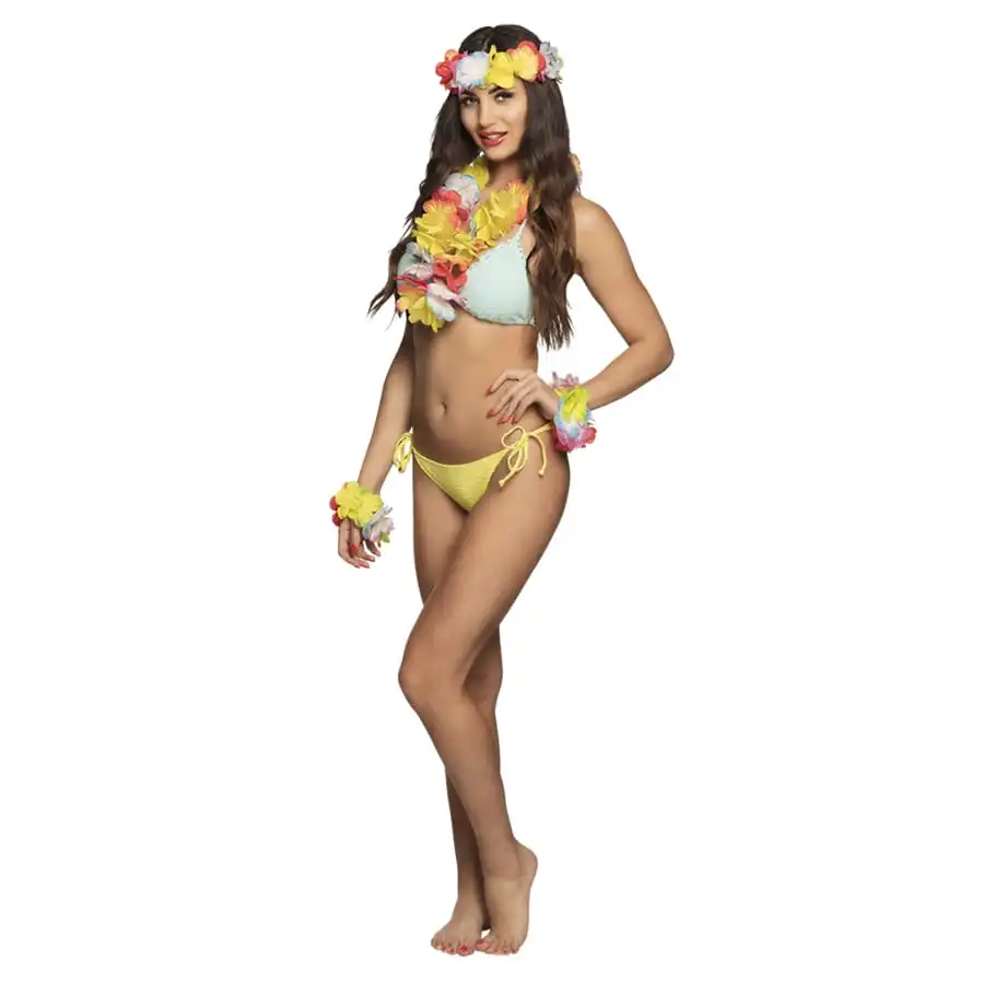 Incarnez la plus belle des vahiné lors d’une soirée au parfum d’exotisme, grâce à l’ensemble couronne collier et bracelet colorés Hawaïen.