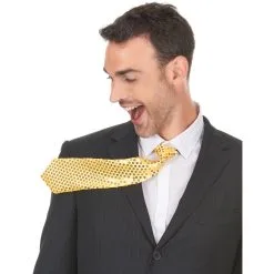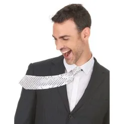 La cravate recouverte de sequins pour adulte est en tissu effet satiné.