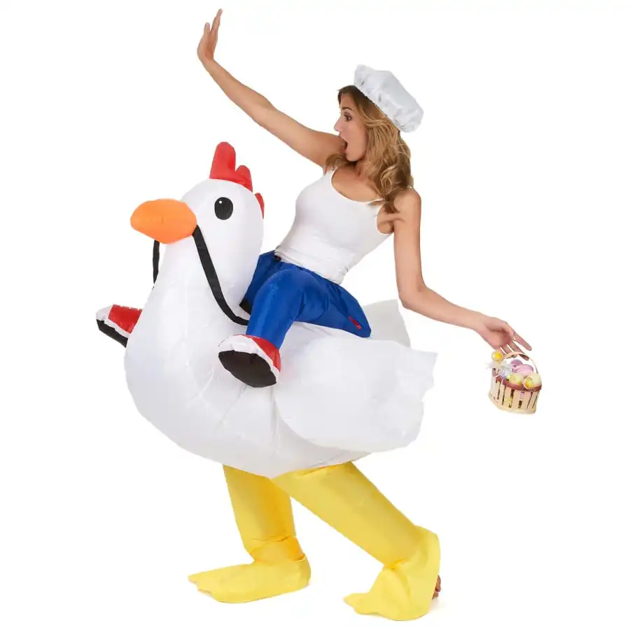 Mettez un brin d’humour dans une soirée débridée avec le déguisement à dos de poulet gonflable.