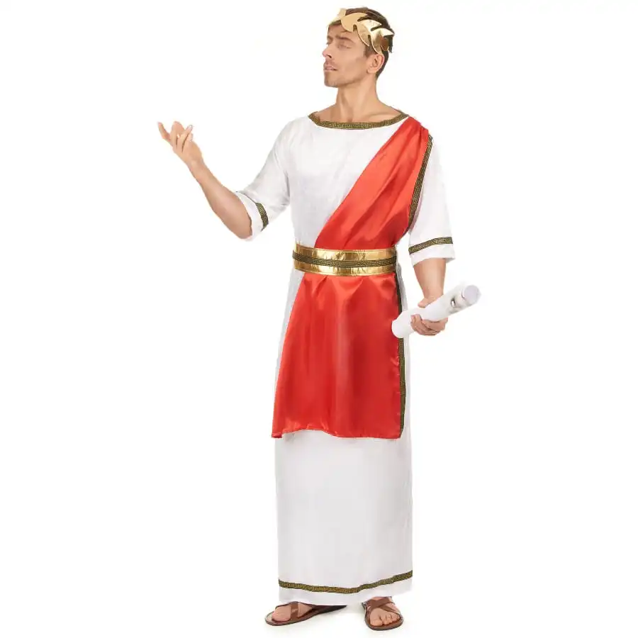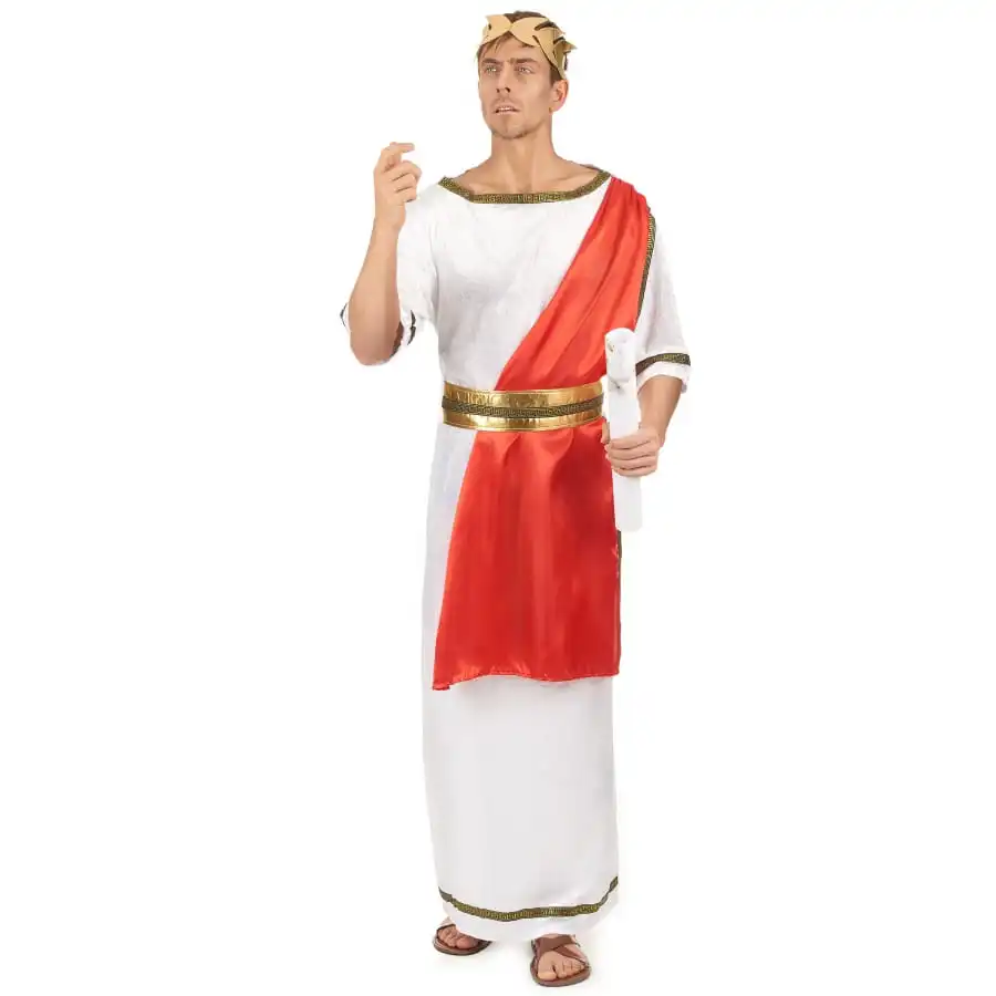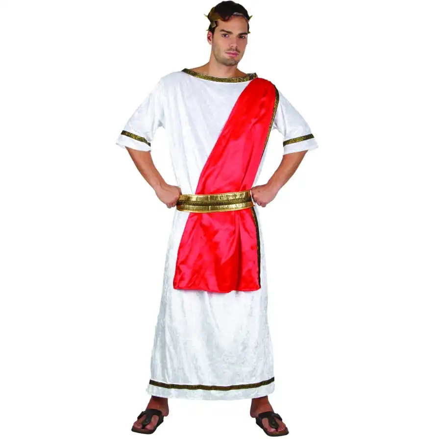Déguisement Blanc De Jules César Avec Toge Rouge