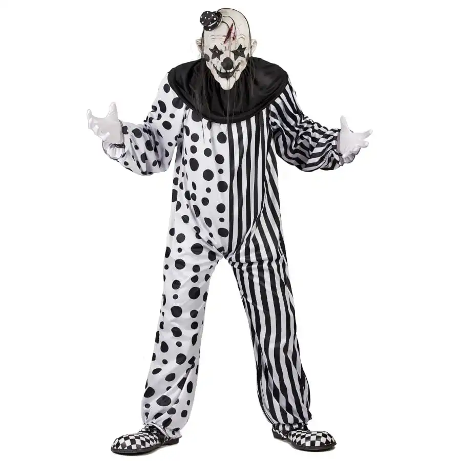 Ce Déguisement blanc noir de clown tueur est disponible en plusieurs tailles adulte.
