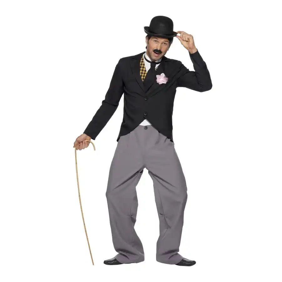 DĂ©guisement de Charlie Chaplin, pour homme, composĂ© d’une veste, d’un pantalon, d’un faux gilet et d’une cravate. La couleur de l’ensemble varie entre le gris et le noir. Vous pourrez choisir entre une taille S, M ou L. C’est un dĂ©guisement parfait pour une soirĂ©e basĂ©e sur un thème Charleston ou sur le cinĂ©ma.