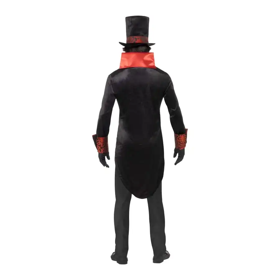 DĂ©guisement de Comte Dracula de couleur rouge et noire, pour homme, composĂ© d’une veste en velours avec col Ă revers en satin, d’un chapeau Ă©galement en velours et d’une cravate en dentelle. Le tout est disponible en taille S, M ou L. Transformez-vous en comte buveur de sang le temps d’une soirĂ©e d’Halloween.