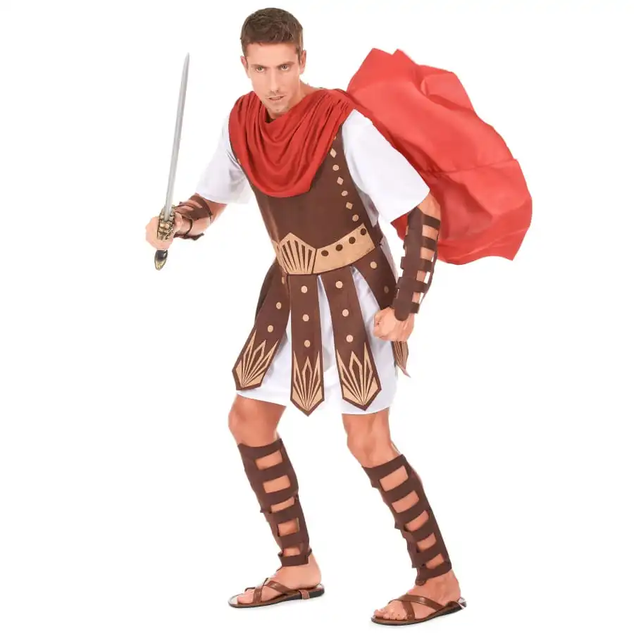 Ce dĂ©guisement cuirasse de soldat romain marron rappelle les gladiateurs ou les sous-officiers romains de l’AntiquitĂ©.