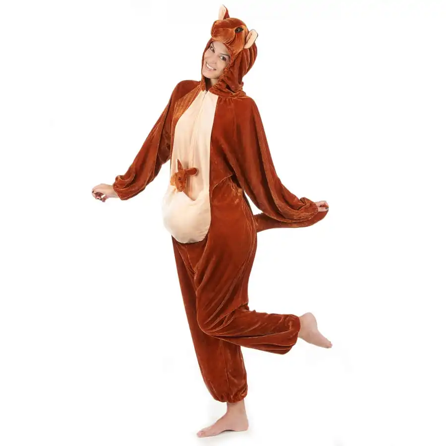 Le déguisement inclut aussi une capuche en forme de tête de kangourou directement intégrée à la combinaison.