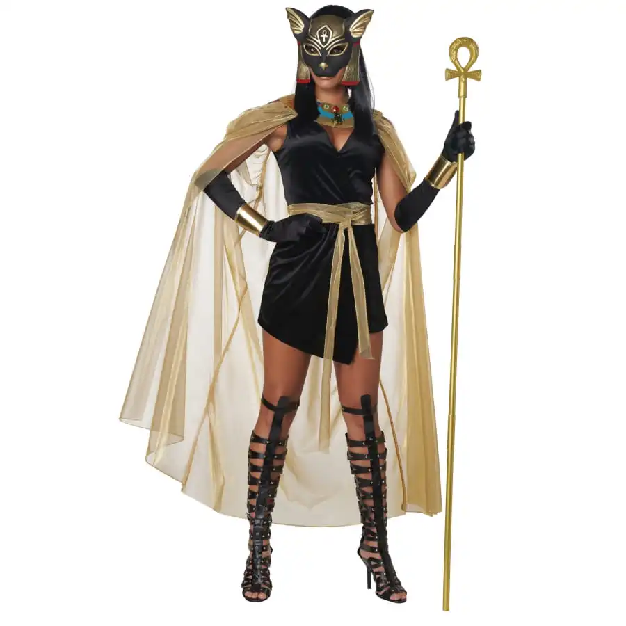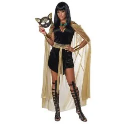Un demi-masque noir et or très chic complète ce déguisement et rendra votre charme de déesse encore plus mystérieux.