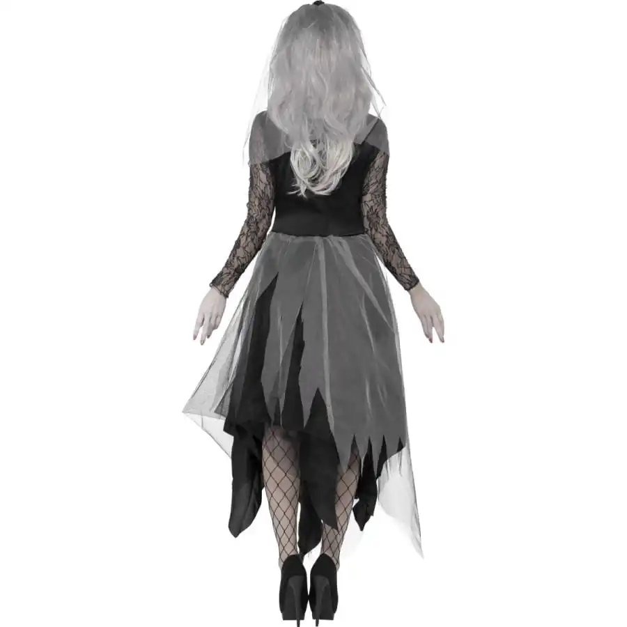 Très original ce déguisement de mariée sinistre gothique ! Ce costume est pour cela composé d’une robe de mariée pas comme les autres, mais de couleur noire avec quelques voiles en lambeaux, ainsi que d’un bouquet de roses, de couleur noire également. Les tailles dont nous disposons pour ce costume sont L, M, S et XL. Accordez votre maquillage à la couleur du déguisement, mettez un peu de fond de teint sur votre visage pour avoir un teint cadavérique et faites en sorte d’avoir un regard noir en abusant sur le mascara, l’eye liner et le crayon. Rappelons que tous les personnages peuvent être représentés lors des fêtes d’Halloween, en rectifiant tout simplement quelques détails pour assombrir le déguisement.