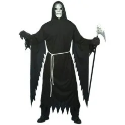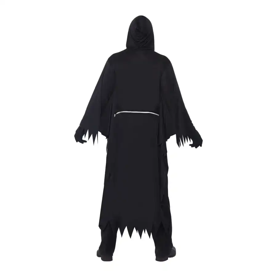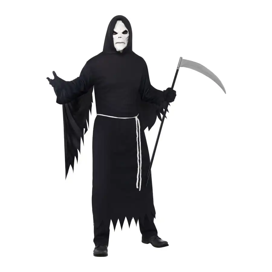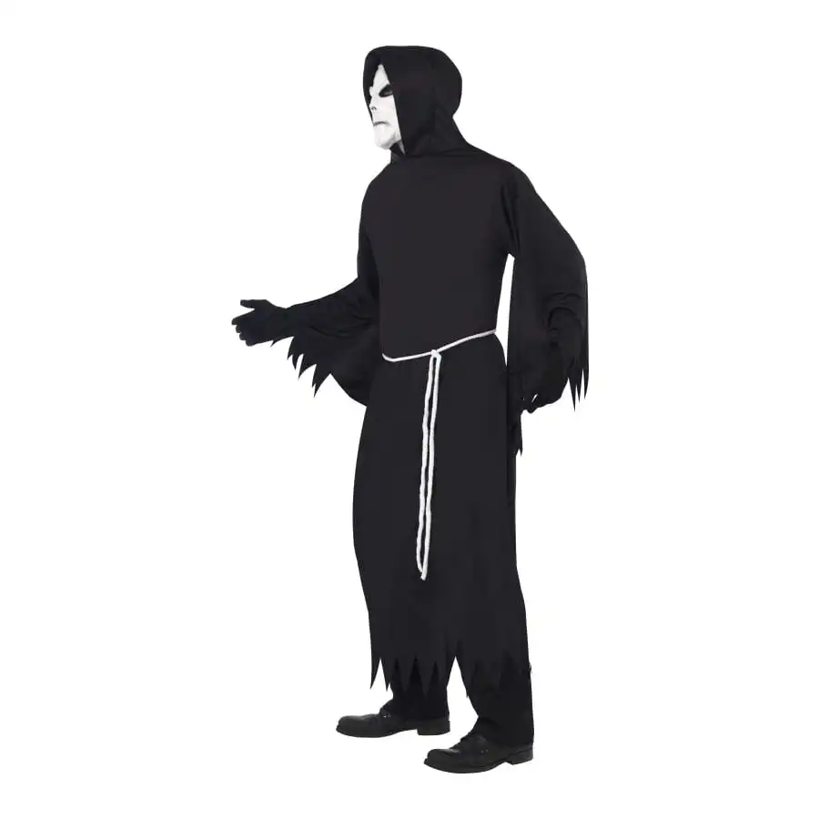 Ce costume de moissonneur sinistre de taille L est une longue robe, manche longue Ă©vasĂ© avec capuche. Pour Halloween c’est sur que vous serez un des personnages les plus remarquĂ© avec ce dĂ©guisement de couleur noir.