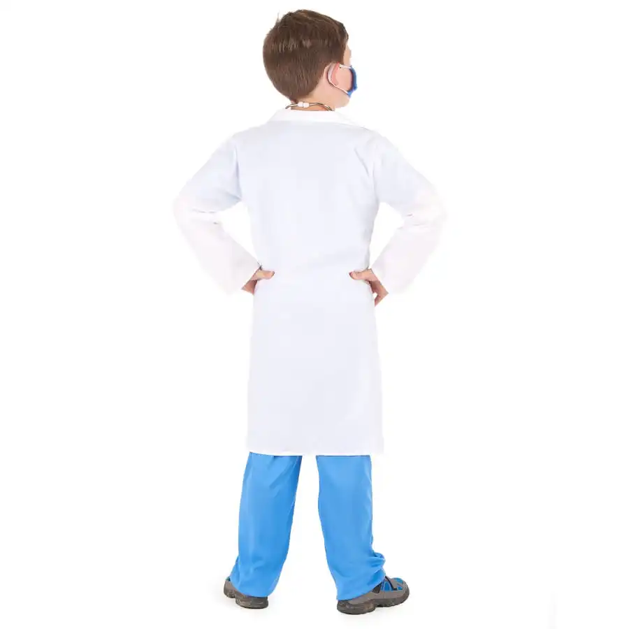 Laissez votre fils incarner un grand docteur avec ce déguisement de petit médecin en tablier, pour enfant. Il se compose d’une blouse blanche à manches longues, long jusqu’aux genoux, qui est ouverte sur le devant par des boutons, avec une fausse poche imprimée sur le côté gauche de la poitrine. Sous la blouse, nous avons un ensemble bleu, dont le haut est fait d’un type de tee-shirt à col V et à manches courtes, et le bas d’un pantalon élastique à la taille. Un masque assorti à l’ensemble bleu est fourni avec le déguisement, il est facile à porter grâce aux élastiques qui s’attacheront derrière les oreilles. Vous pouvez compléter la tenue avec un stéthoscope, à retrouver sur notre site !
